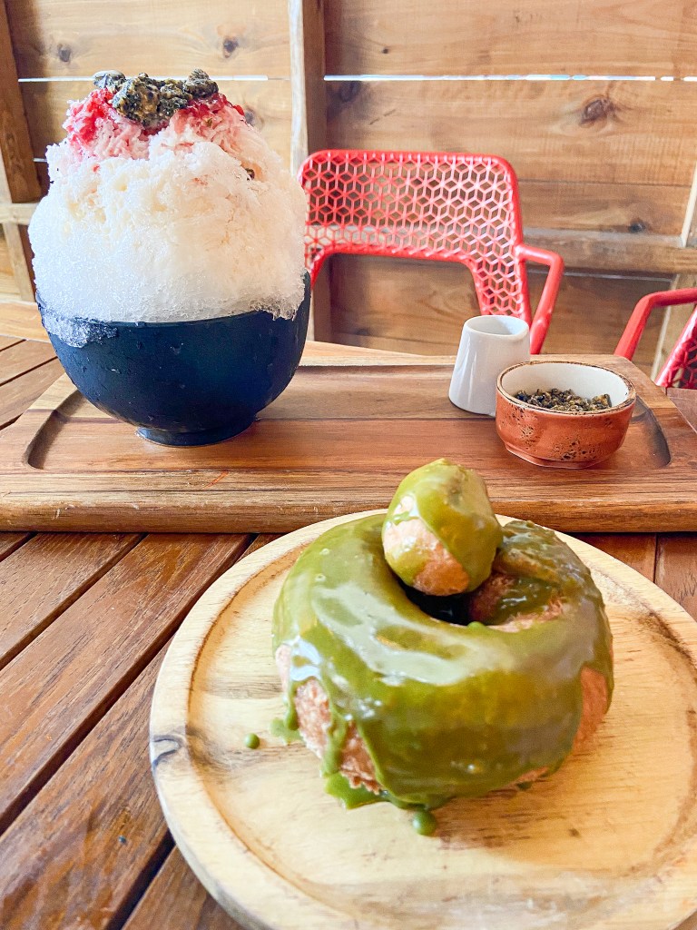 Japanese / Gaijin was an all-around tasty experience: from drinks to okonomiyaki to dessert, this place should be a stop on everyone’s itinerary in Chicago. Okonomiyaki is a Japanese savory pancake commonly made with cabbage and meat or seafood. Gaijin served a variety of okonomiyaki including seafood, meat, or vegetarian options. Pictured below is the pork okonomiyaki. Their cocktails are even beautiful! I tried the ube all day, one of their kakigori cocktails served over shaved ice. And don’t forget the best course: dessert! We tried one of their kakigori, which is a Japanese shaved iced dessert flavored, and a matcha mochi donut. I love mochi donuts, the consistency of a slightly warm/crisp donut paired with the chewiness of mochi is just an amazing combination.